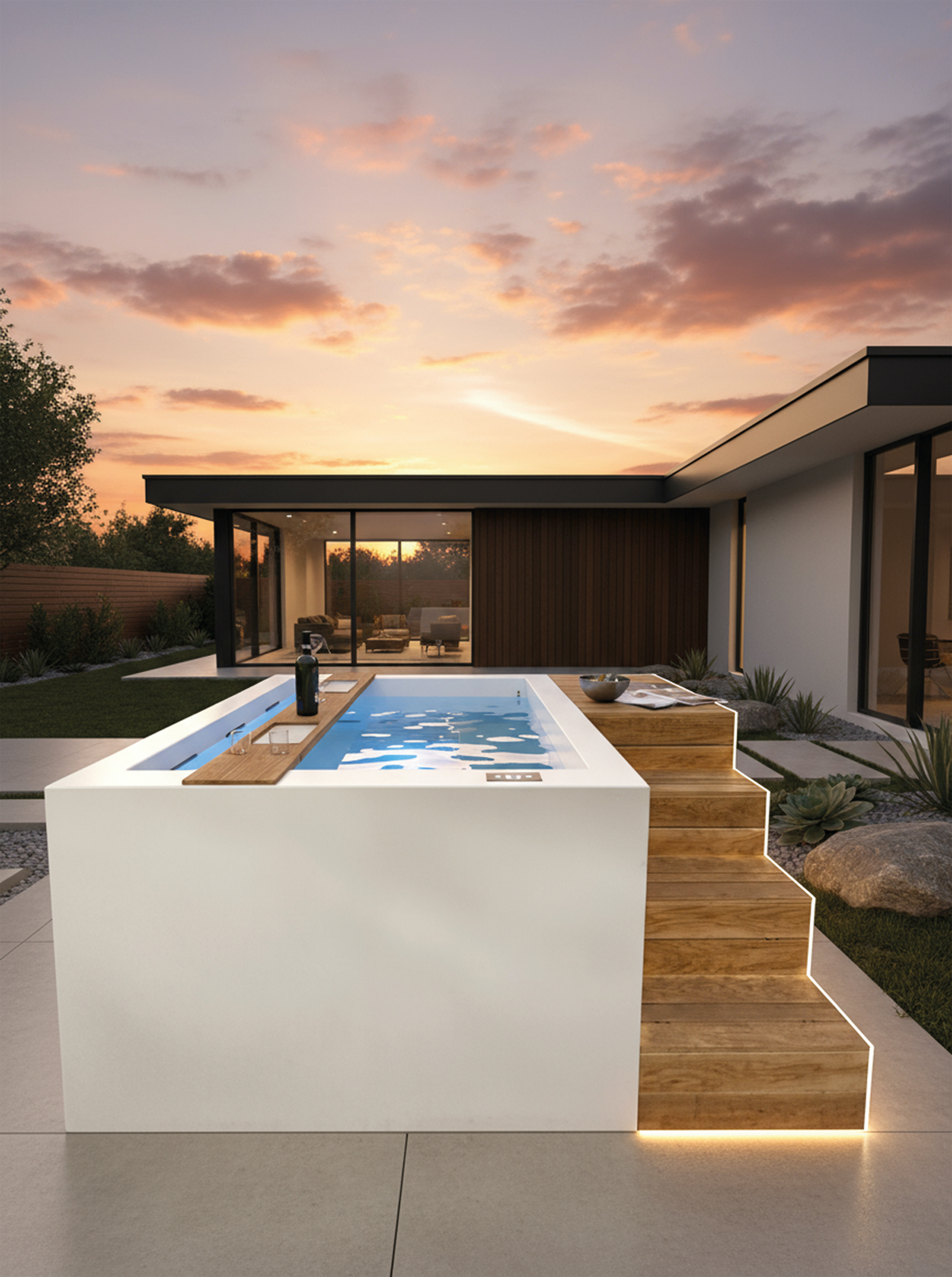 Disponibili in diverse dimensioni e configurazioni, le vasche H2O Cube possono essere adattate a qualsiasi spazio e arricchite con rivestimenti in legno naturale o WPC, per una perfetta integrazione con l’ambiente circostante.